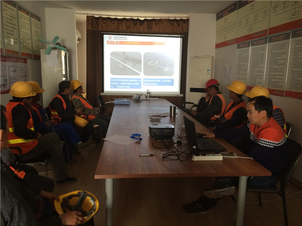 為此,濟南市市政工程有限公司緯十二路項目部進行周密策劃,精心準備,首先協助建設單位召開封閉施工新聞發布會,然后向沿線單位及小區居民發放公示信;針對路口檢查井蓋較多的情況,項目部提前通過PPT課件和視頻教學的方式組織民工進行防沉降井蓋提升的施工及安全技術交底工作,確保瀝青面層攤鋪順利進行。