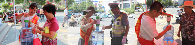 活動當天,最高氣溫高達40度,志愿者們頂著炎炎烈日,為過往市民提供飲用水、打氣筒、雨傘、扳子、鉗子、螺絲刀、藿香正氣水、速效救心丸、酒精藥棉等一系列救急便民措施,連續服務了近7個小時,雖然汗流浹背,但依然面帶微笑,為市民提供喝水乘涼便民服務,帶去陣陣清涼。當市民了解到是濟南市政志愿者的時候,紛紛詢問起公司承建的重點工程項目,對公司的工程形象、進度、質量和安全文明施工稱贊不已,對公司志愿者積極投身到創城、社會公益事業等活動中大加贊揚。