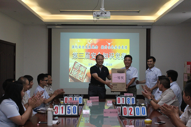 知識競賽7組參賽小組分別由公司各項目部經(jīng)理帶隊,項目總工及安全員組成,經(jīng)過必答題、搶答題、風(fēng)險題及趣味知識題等多種題型的激烈角逐,一線青工既鞏固了平日所學(xué)知識,也擴大了知識面,及時做到查缺補漏。通過公司領(lǐng)導(dǎo)在活動當(dāng)中對安全工作的指點及要求,各項目部人員對公司的各項要求加深了印象,也把握住了今后安全工作的重點。