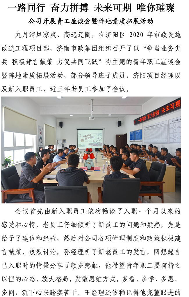 一路同行 奮力拼搏 未來可期 唯你璀璨——公司開展青工座談會暨陣地素質拓展活動