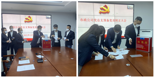 12月6日,市政公司黨總支第一黨支部、第二黨支部先后召開預備黨員轉(zhuǎn)正會議,討論曹凱、孔慶巖2名同志的轉(zhuǎn)正事宜。各項目部黨員視頻參會。