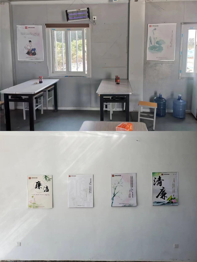 為持續(xù)推進(jìn)黨風(fēng)廉政建設(shè),筑牢拒腐防變思想方向,營造廉潔文化工作氛圍,市政公司各項(xiàng)目部積極響應(yīng)集團(tuán)號召,在辦公區(qū)、食堂等地方懸掛了廉政文化宣傳圖牌,打造廉潔文化空間,形成了一道靚麗的風(fēng)景線,有力地推動了公司廉政文化建設(shè)的深入開展。