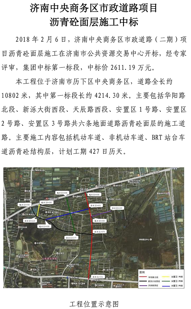 濟南中央商務(wù)區(qū)市政道路項目 瀝青砼面層施工中標(biāo)